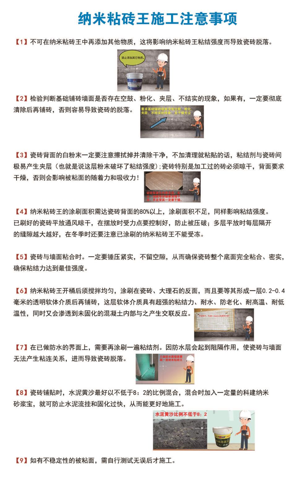 4)1kg納米粘磚王可涂刷10-14平方米左右;